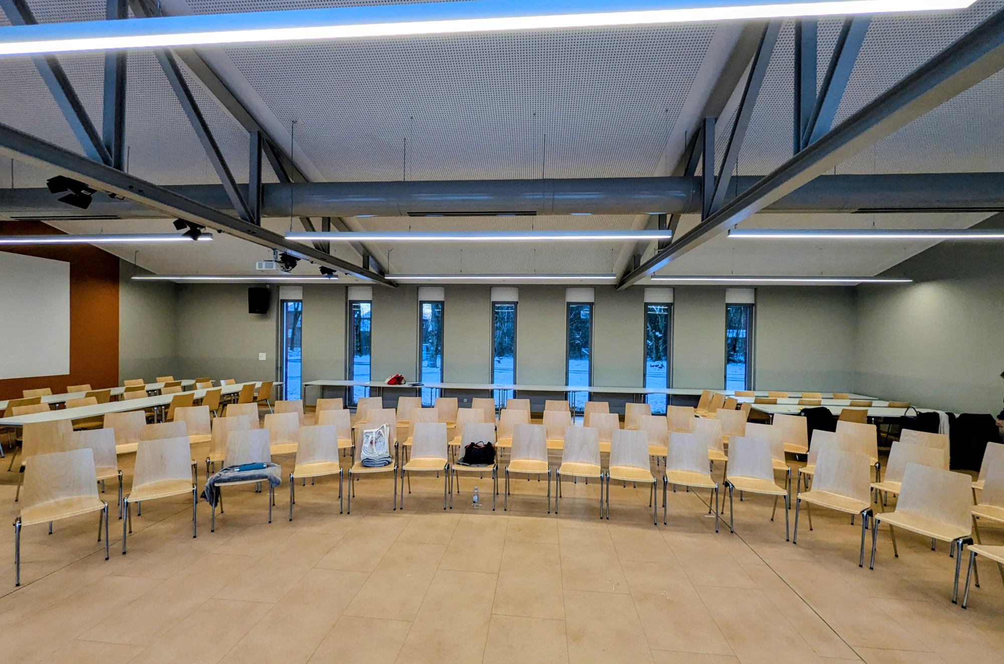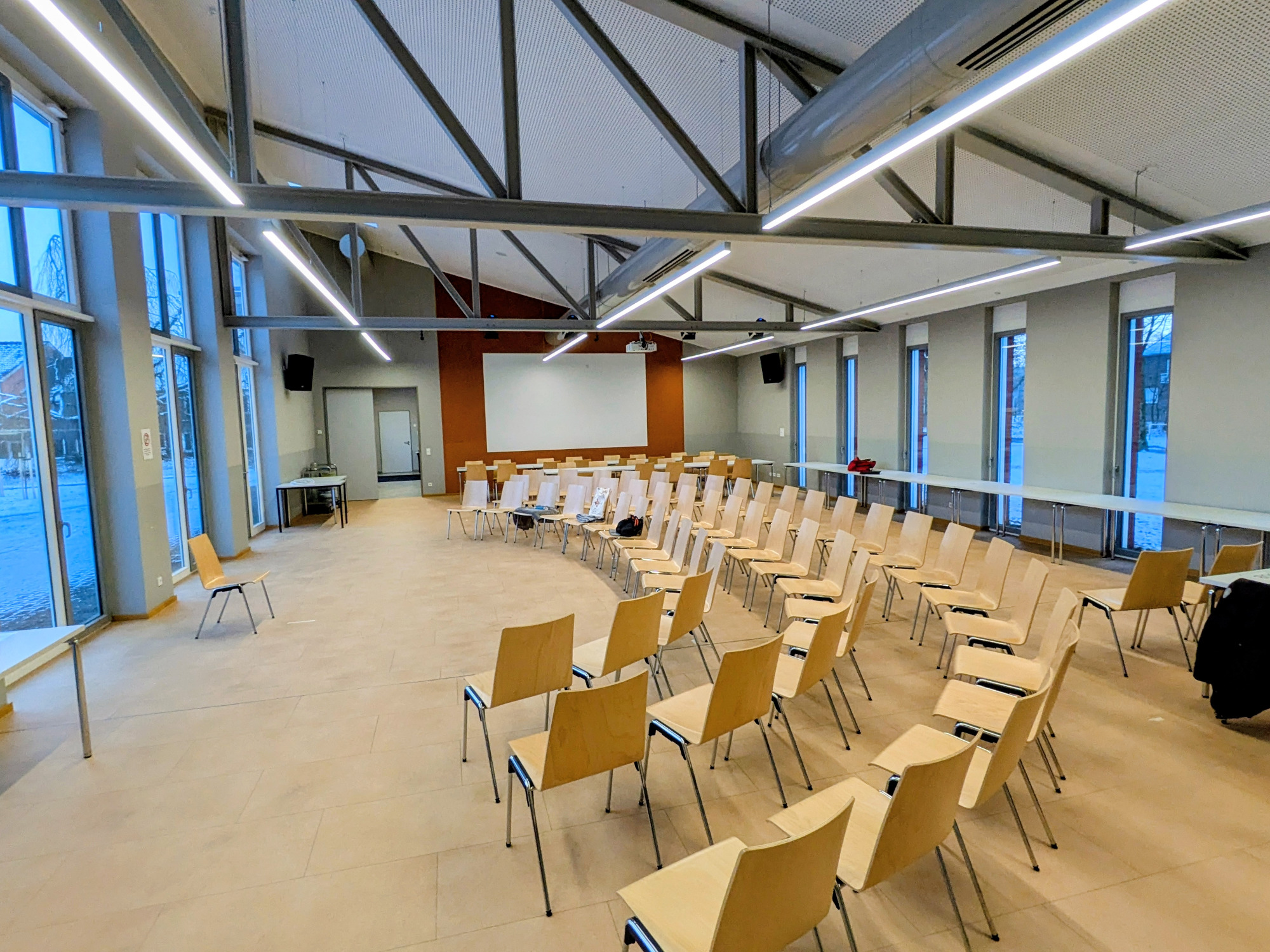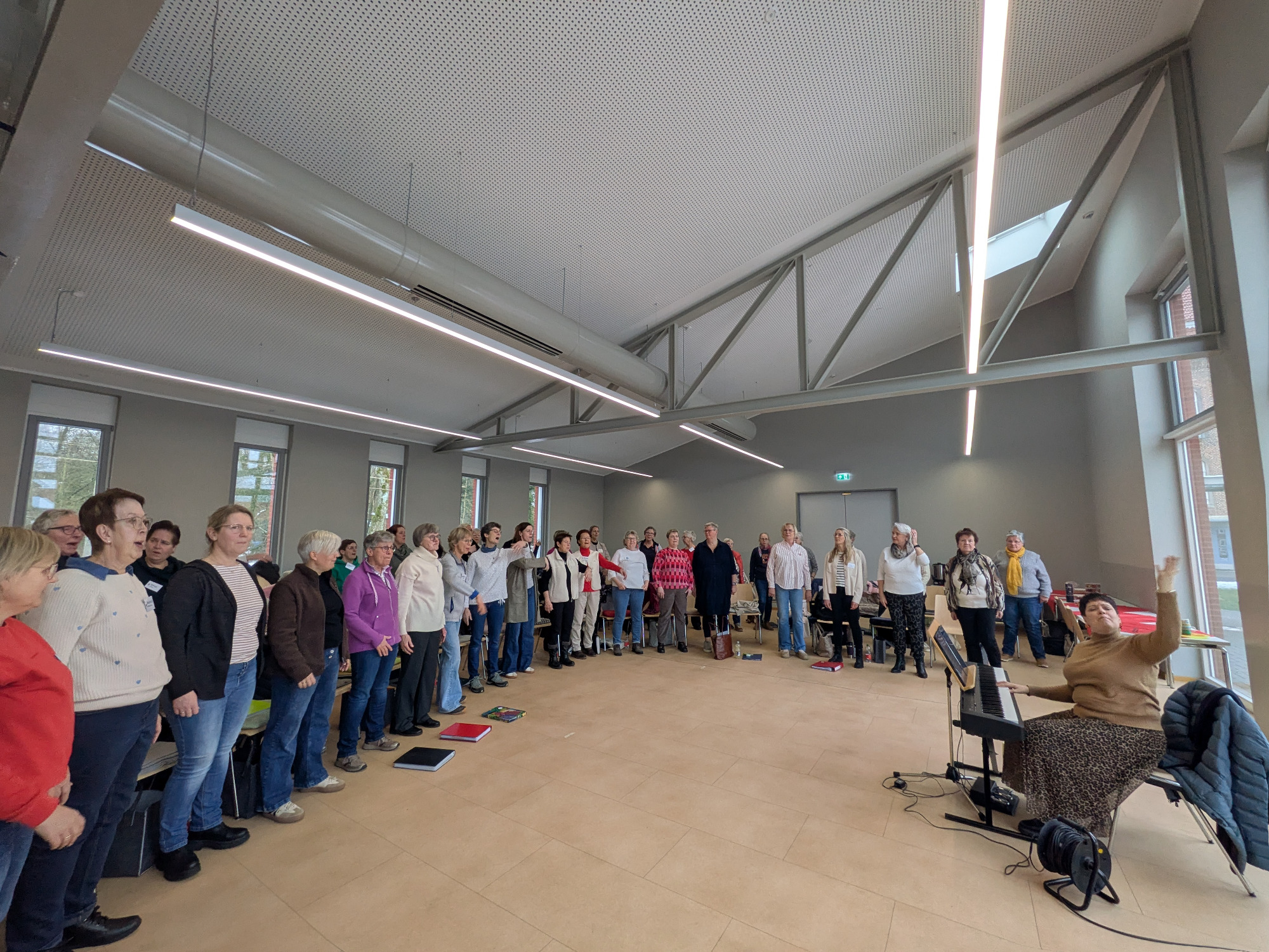 Die Mensa auf dem Campus St. Josef in Wettringen war dafür der perfekte Ort: ausreichend Platz, gute Akustik und beste Bedingungen für unser Probenwochenende.